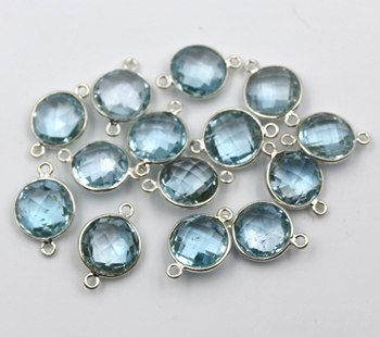 Conectores de monedas de plata esterlina de Topacio azul cielo 11mm 5 piezas
