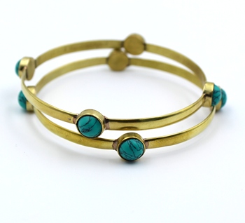 Turquoise Cuff Bangle for Bracelet with 4 Round Shaped 9MM Gemstones Classic Style Brass Jewelry for Weddings Bangle Size 8